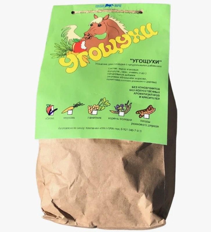 Порадуйте своего верного друга вкусным и полезным угощением! «УГОЩУХИ» — это не просто лакомство, а настоящая забота о здоровье и хорошем настроении вашей лошади, созданное с любовью в России.