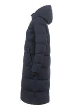 Дизайн: удлинённый макси-крой с крупным капюшоном и горизонтальной простёжкой по всей длине.